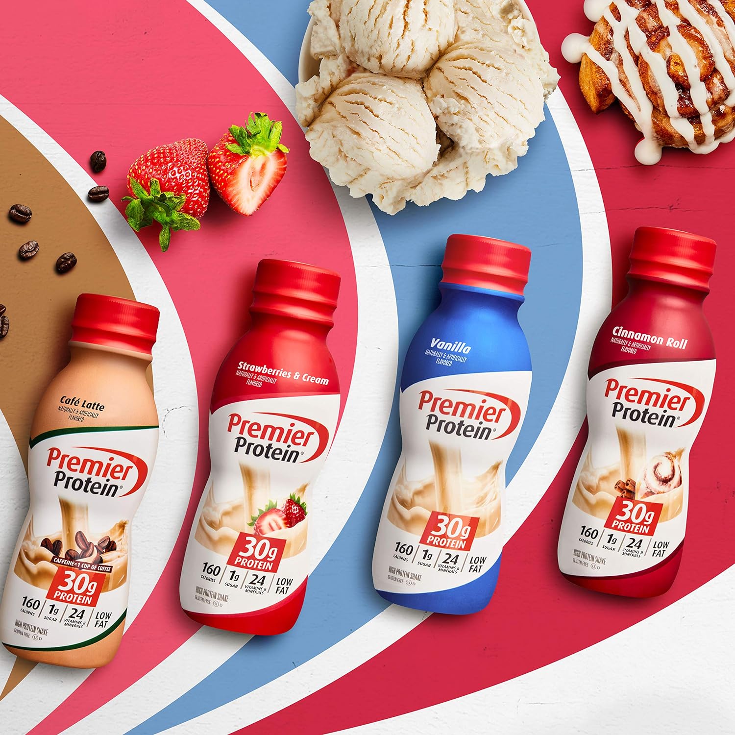 Premier Protein Shake. Bananas & Cream. 30g Protein. 1g Sugar. 24 Vitamins & Minerals. Nutrients to Support Immune Health. 12 Pack
